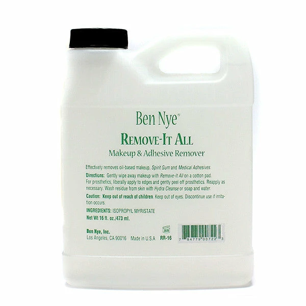 Ben Nye’s Remove It All easily breaks down heavy creme makeup as well as Spirit Gum, medical and prosthetic adhesives for effortless removal!