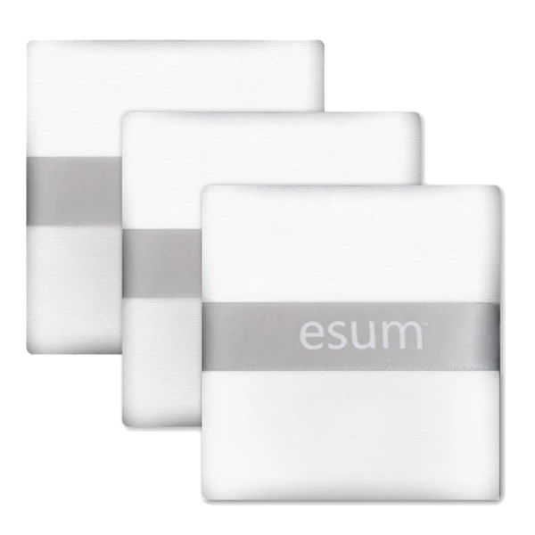 Esum Pro Finishing Puffs are square with softly rounded corners, affording versatility to fit all contours of the face. Soft 100% micro-fiber cotton velour sets makeup without leaving a detected imprint while a wide satin ribbon provides a more secure fit the fingers.
