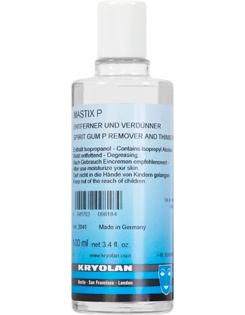 Special remover and thinner for Mastix P, Spirit Gum, TV Spirit Gum, and Ur Spirit Gum.