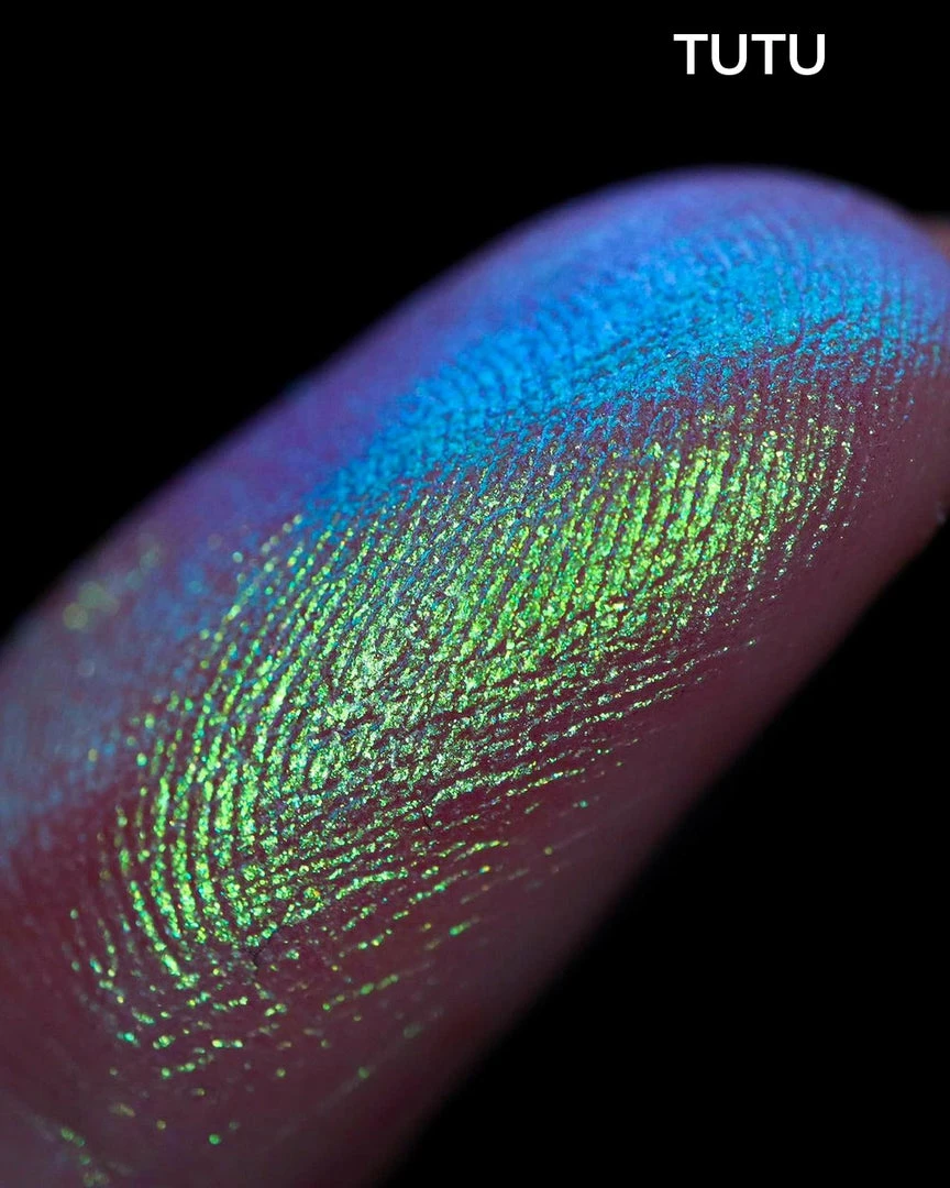 These finely milled, loose duochrome eyeshadows reflect a unique, hybrid tone between a pastel shimmer and an iridescent chameleon. They are best applied over a primer or mixing medium. We recommend pairing it with Karla’s best-selling Fix Potion for an intense shift.
